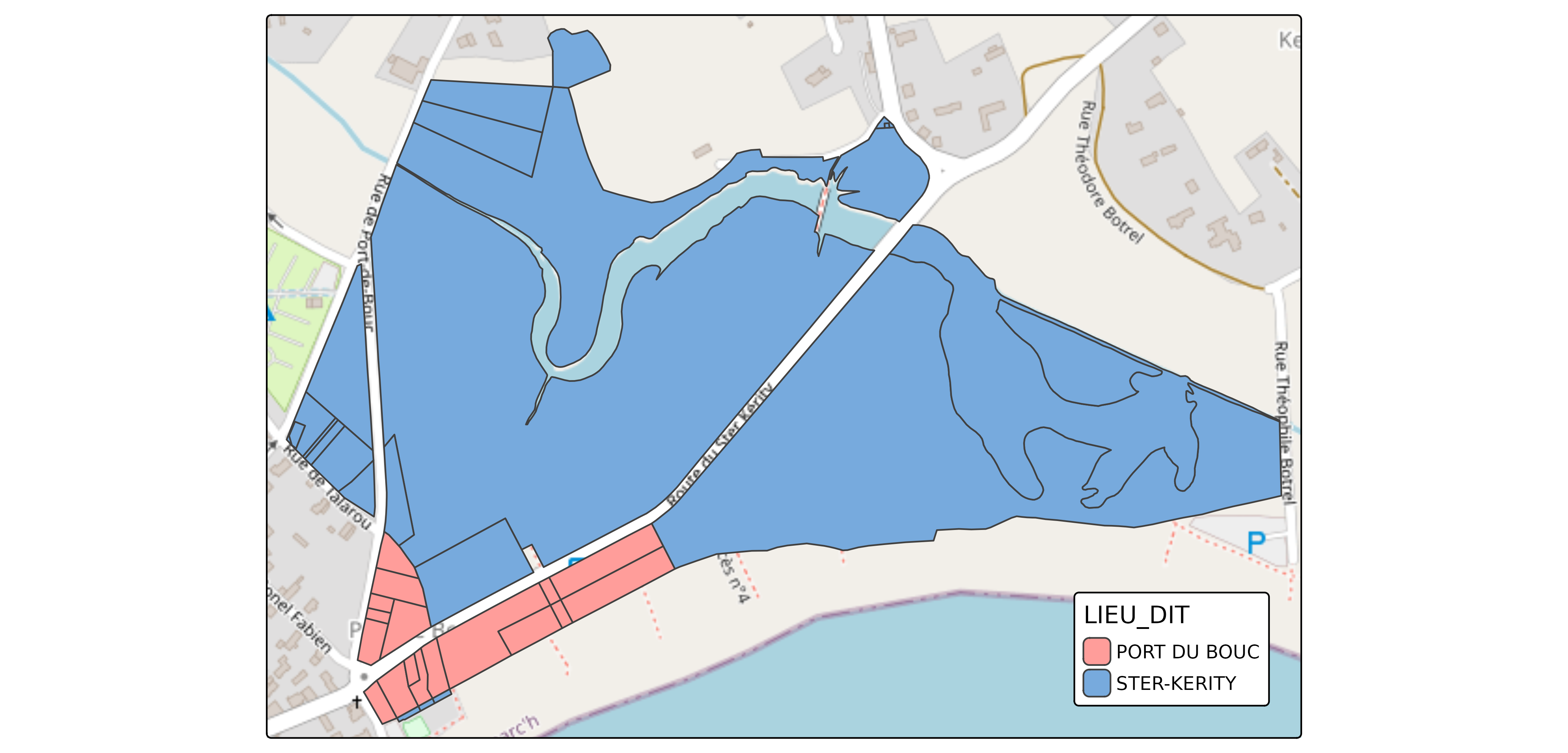 By default, Etalab cadastral parcels do not include lieu-dit information. However, a separate dataset exists, and retrieving lieu-dit requires performing a spatial join between the two sources.